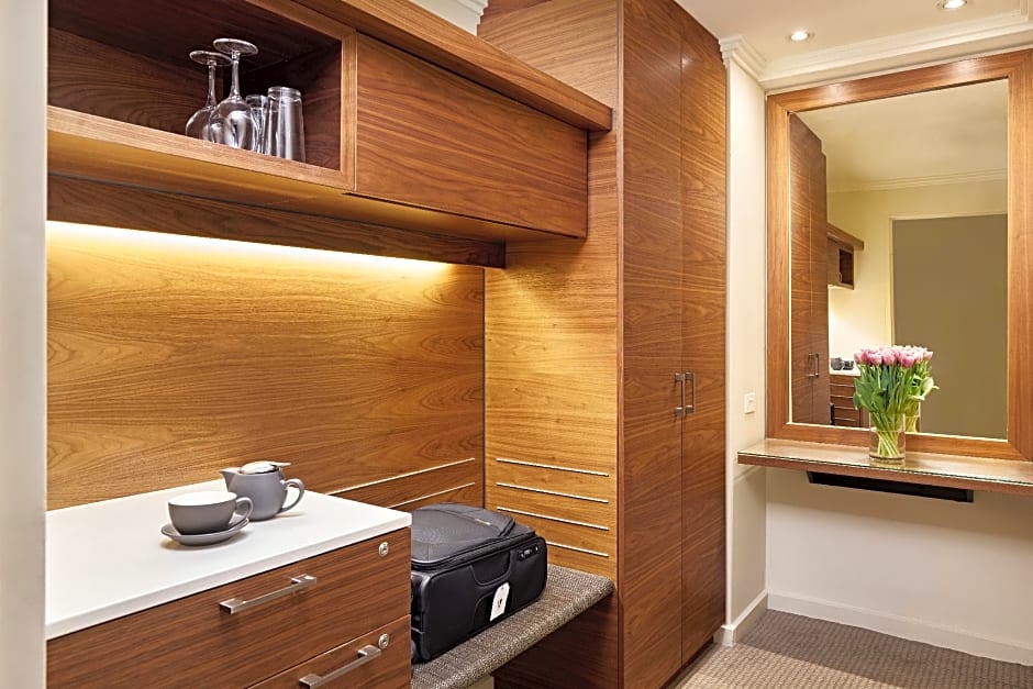 Located on the corner of the hotel the Deluxe King Room offers windows on 2 sides. The spacious 35 sqm room has a king bed, 55-inch LCD TV, broadband internet access, a desk, en suite and 2 arm chairs.